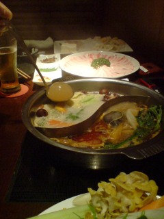 とさかの鶏鍋は、テーブルの横で作ってくれて、取り分け大臣いらず。