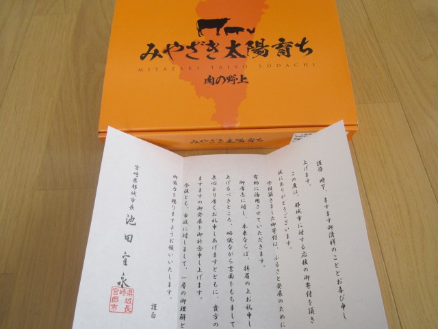 都城へふるさと納税 日記 Twitter Facebook はてブ LINE コピー 2016.01.22 宮崎県都城市へのふるさと納税のお礼の品が届いた。幸せ上々、みやこのじょう。 すき焼きでおいしくいただきました。