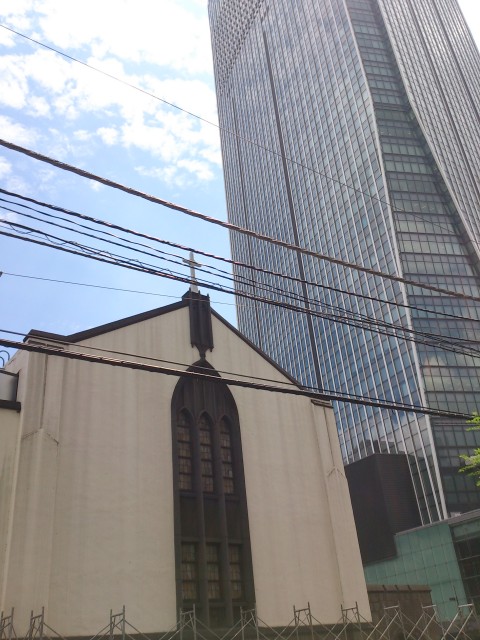 虎ノ門ヒルズ拡大中 日記 Twitter Facebook はてブ LINE コピー 2016.08.24 虎ノ門ヒルズの隣で「(仮称)虎ノ門ヒルズ ビジネスタワー」(地下3階、地上36階建て(高さ約185m))のための解体工事が始まっている。金曜の海老フライで有名な平五郎はすでに閉店済み。この教会も取り壊されてしまうのだろうか。