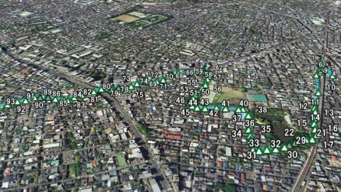 GPS-CS1Kに記録されているログはNMEA-0183フォーマットで記録されているので、GPSBabelというツールでkml(Keyhole Markup Lunguage)へ変換してからGoogle Earthで読み込んで経路を3Dで表示してみる。それにしてもGoogle Earthすげー。