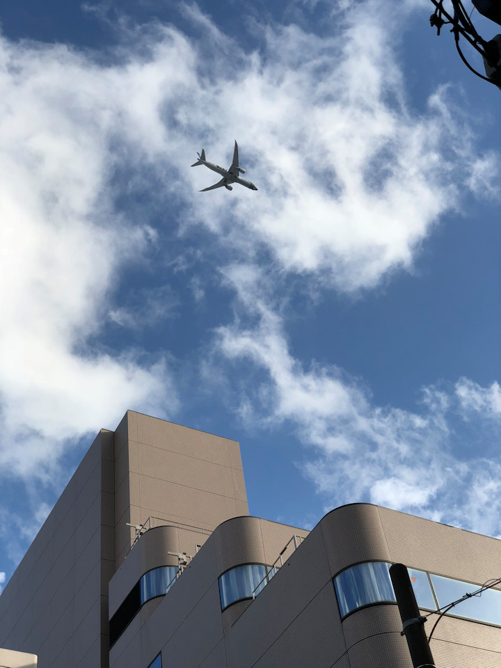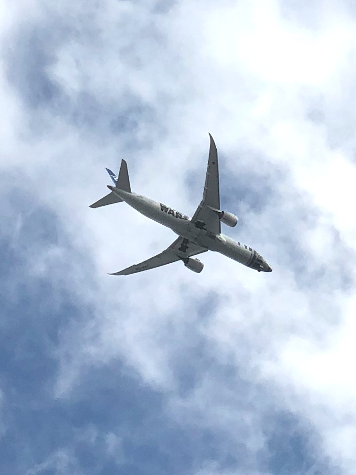 スターウォーズジェット 日記 Twitter Facebook はてブ LINE コピー 2019.09.23 江戸川区上空を航空機が飛行するのは、定期的な運航ルートではなく、南風でかつ悪天候により通常の東京湾上空の飛行経路が利用できない場合です。悪天候時なので曇っていて飛行機の機体が見えないことが多いのですが、今日はたまたま晴れていて見えたらスターウォーズの特別塗装ジェットでした。
