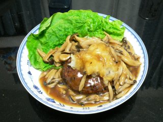 日記 和風ハンバーグ 今夜は和風ハンバーグよー。ハンバーグはレトルトですが、ソースは自作で、きのこと大根おろしで作りました。レトルトに洋風のソースがついていたにもかかわらず、なぜ和風にしたかというと、はい、カンのいい人はおわかりですね、大根が余ってたから。 (... 2006.02.04 日記