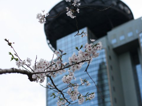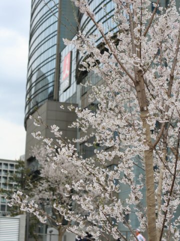 TBS放送センター(ビッグハット)と桜